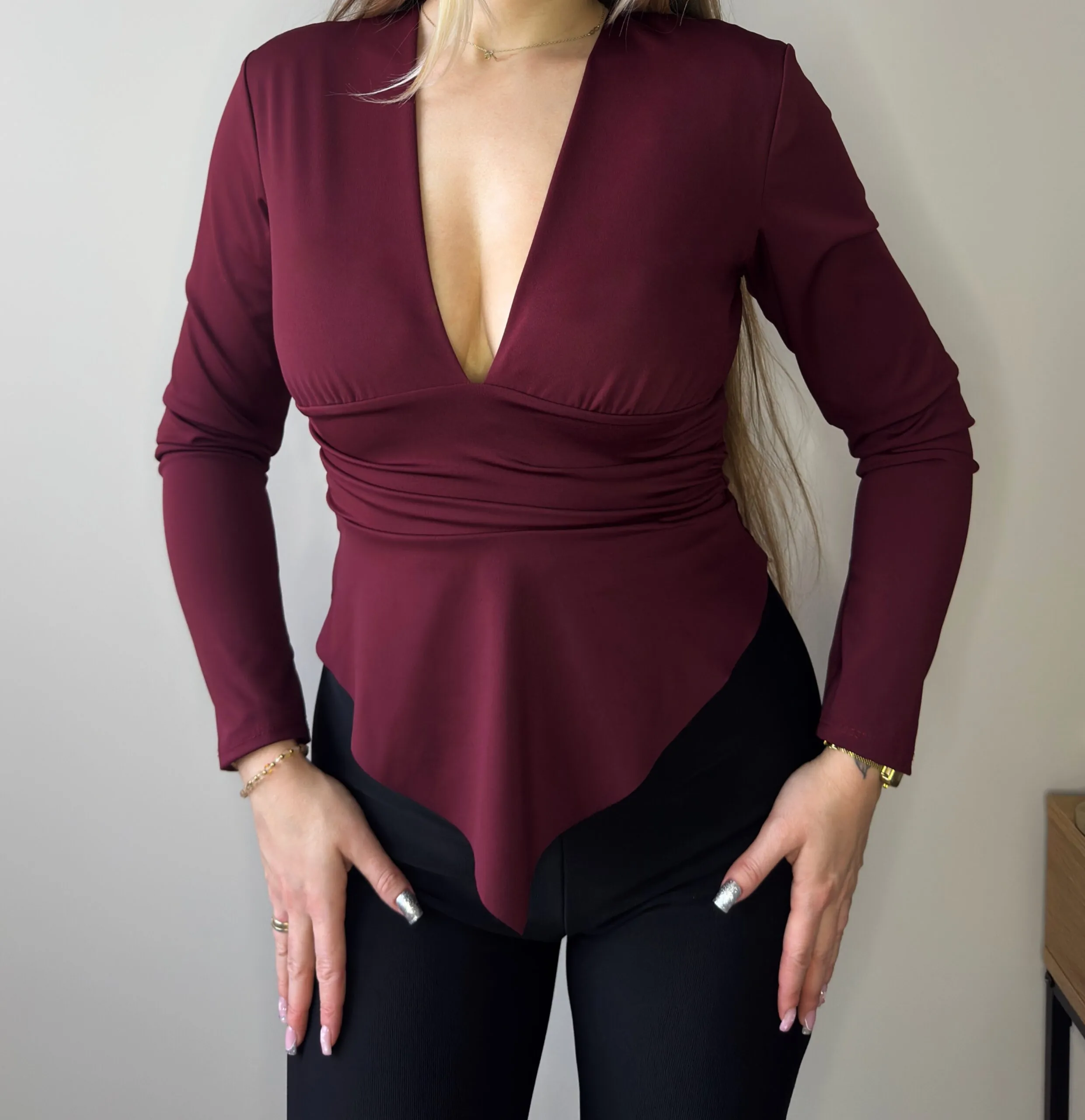 BLUZKA VERA Z ASYMETRYCZNYM DOŁEM – BORDOWA