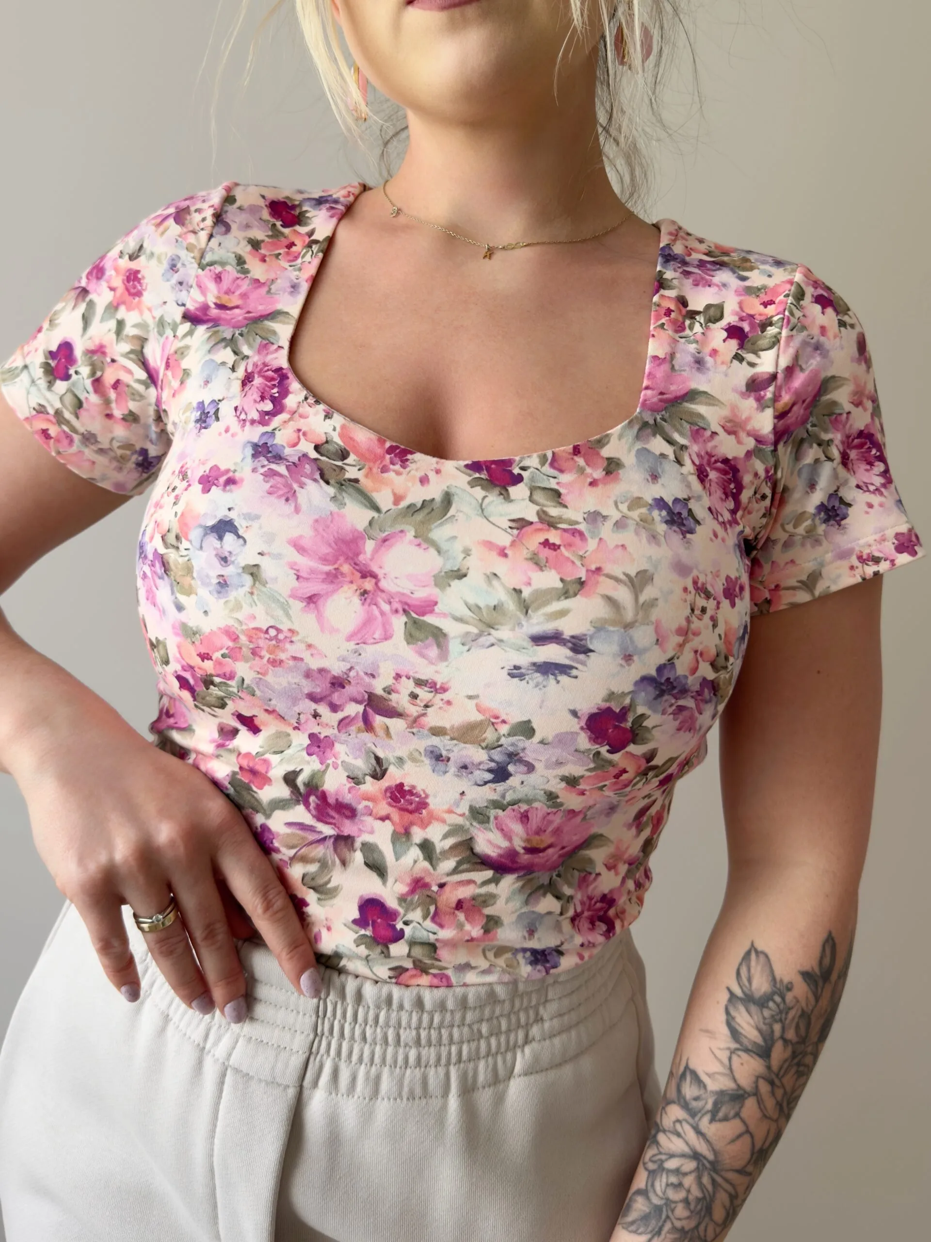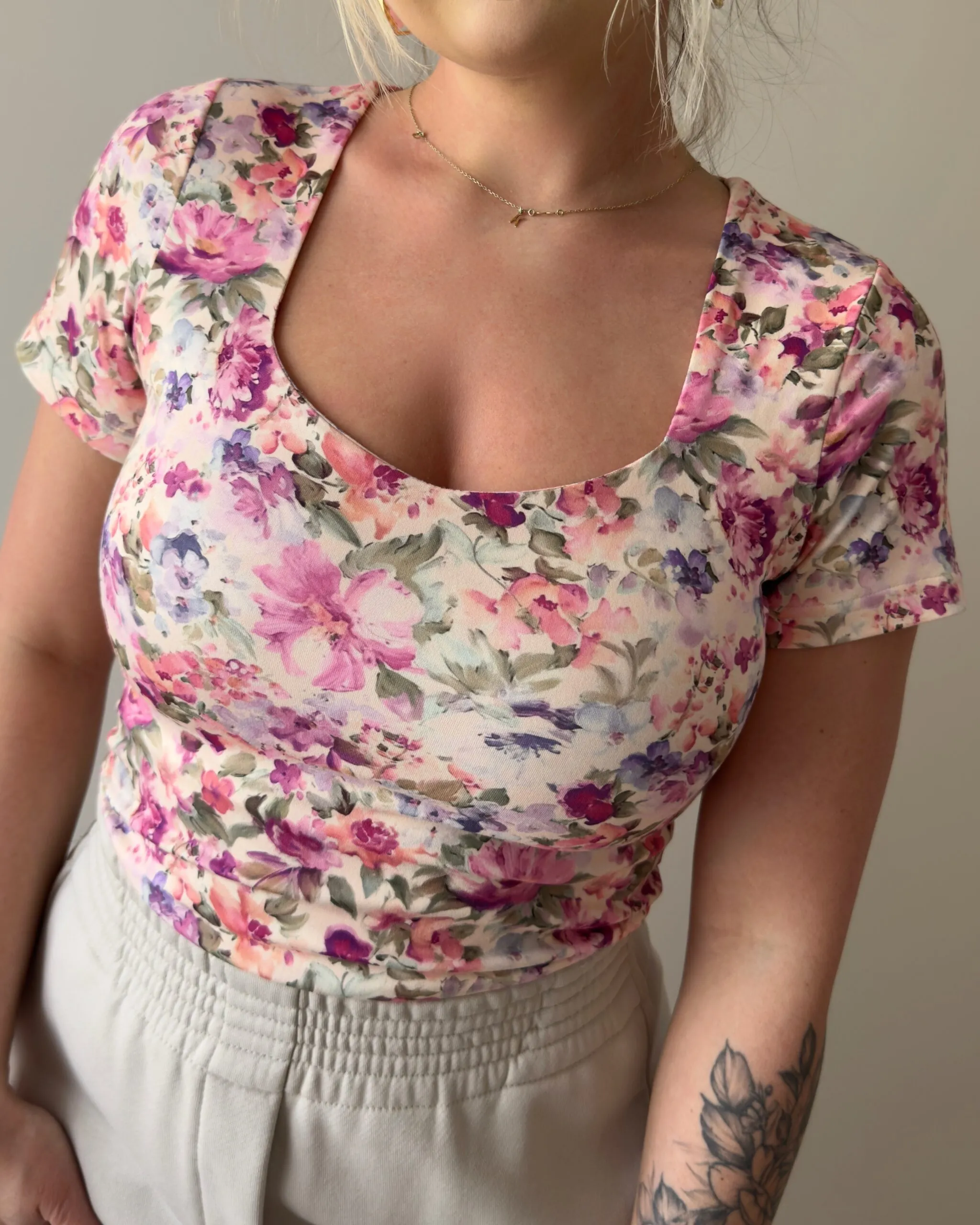 Kobiece body w delikatny kwiatowy print, które podkreśla sylwetkę i dodaje lekkości stylizacji. Dopasowany krój, subtelny dekolt i elastyczny materiał zapewniają komfort noszenia przez cały dzień.