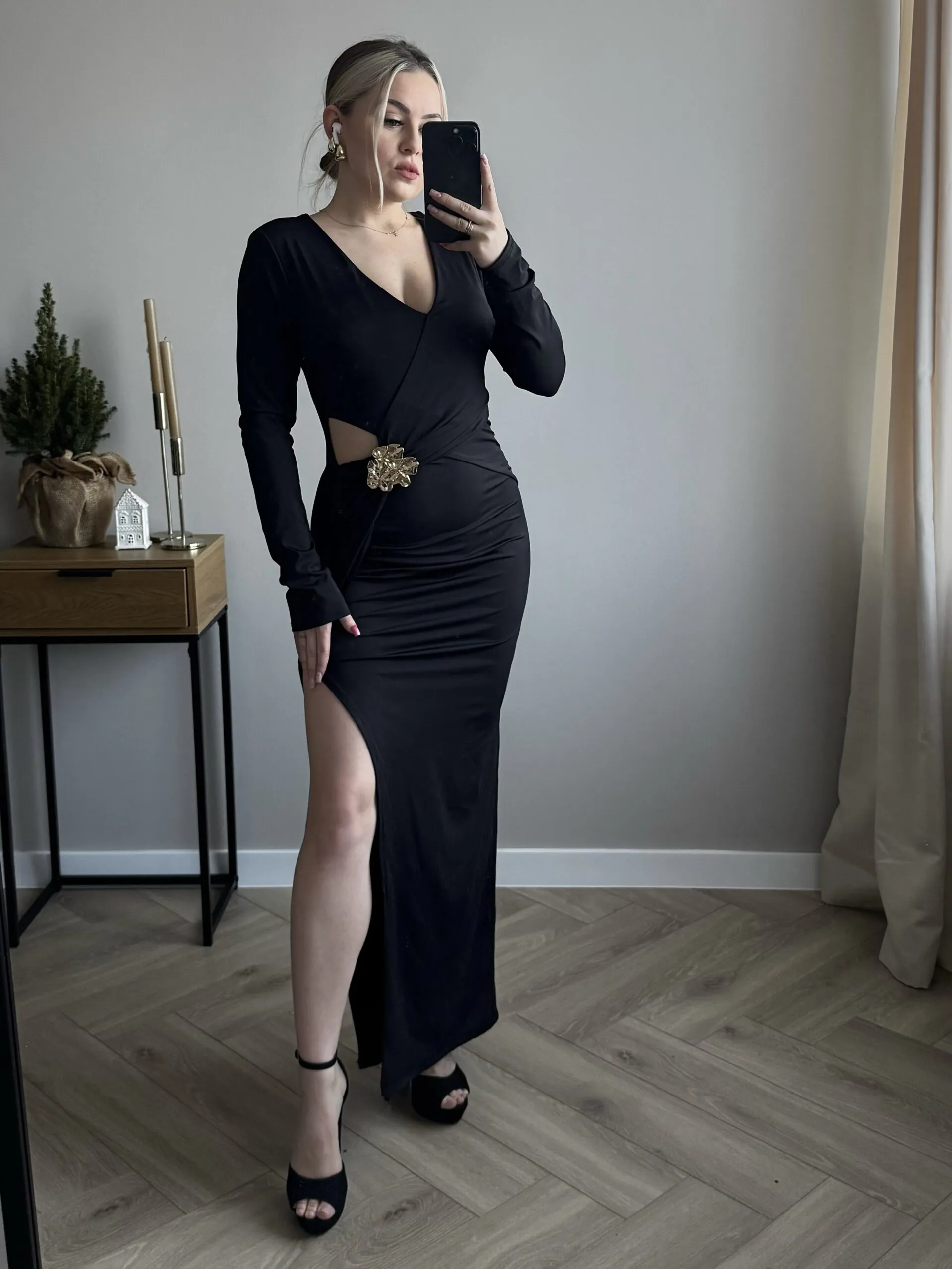 SUKIENKA - MAXI GOLD DETAIL BLACK