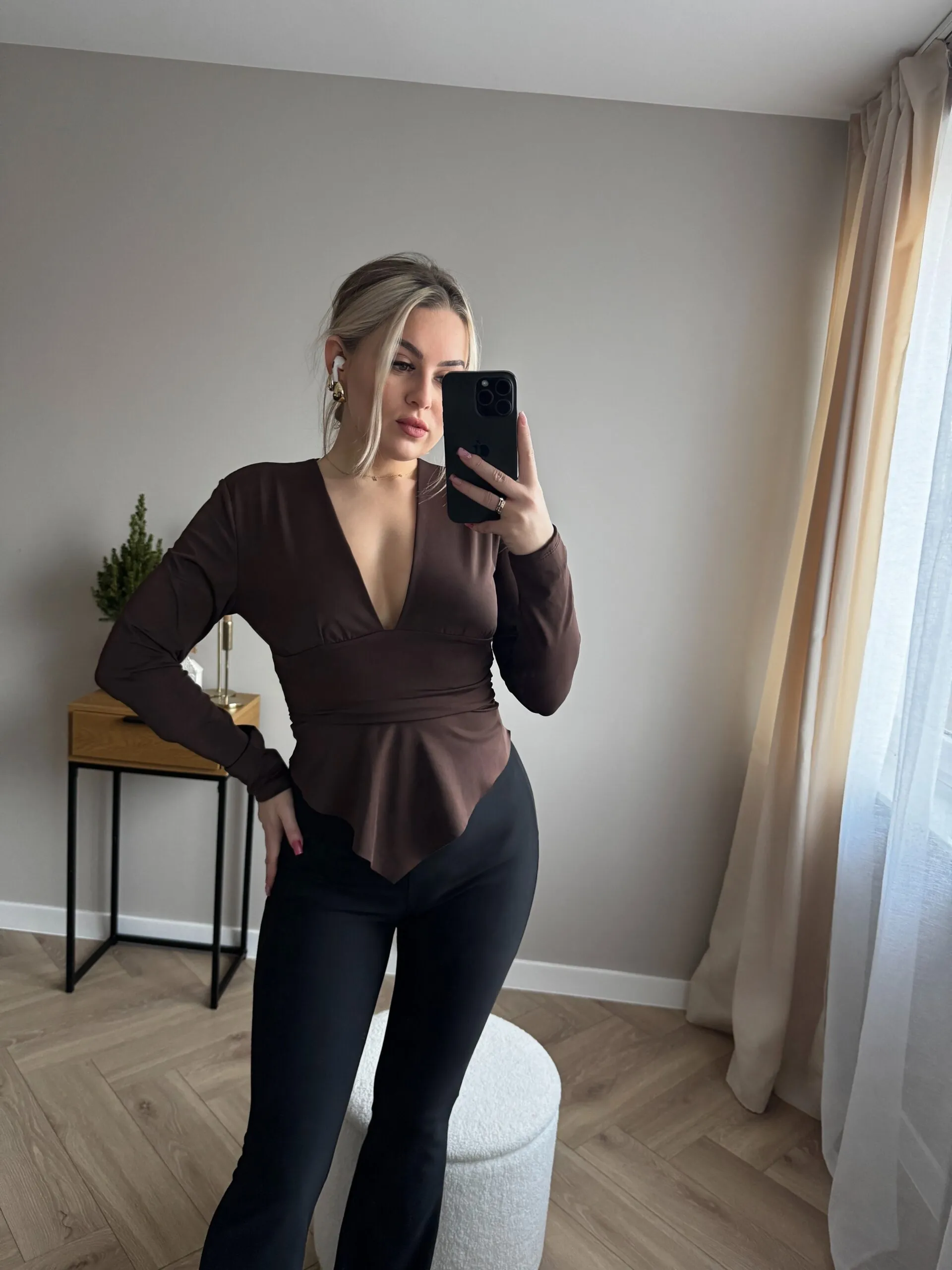 BLUZKA VERA Z ASYMETRYCZNYM DOŁEM - BRĄZOWA