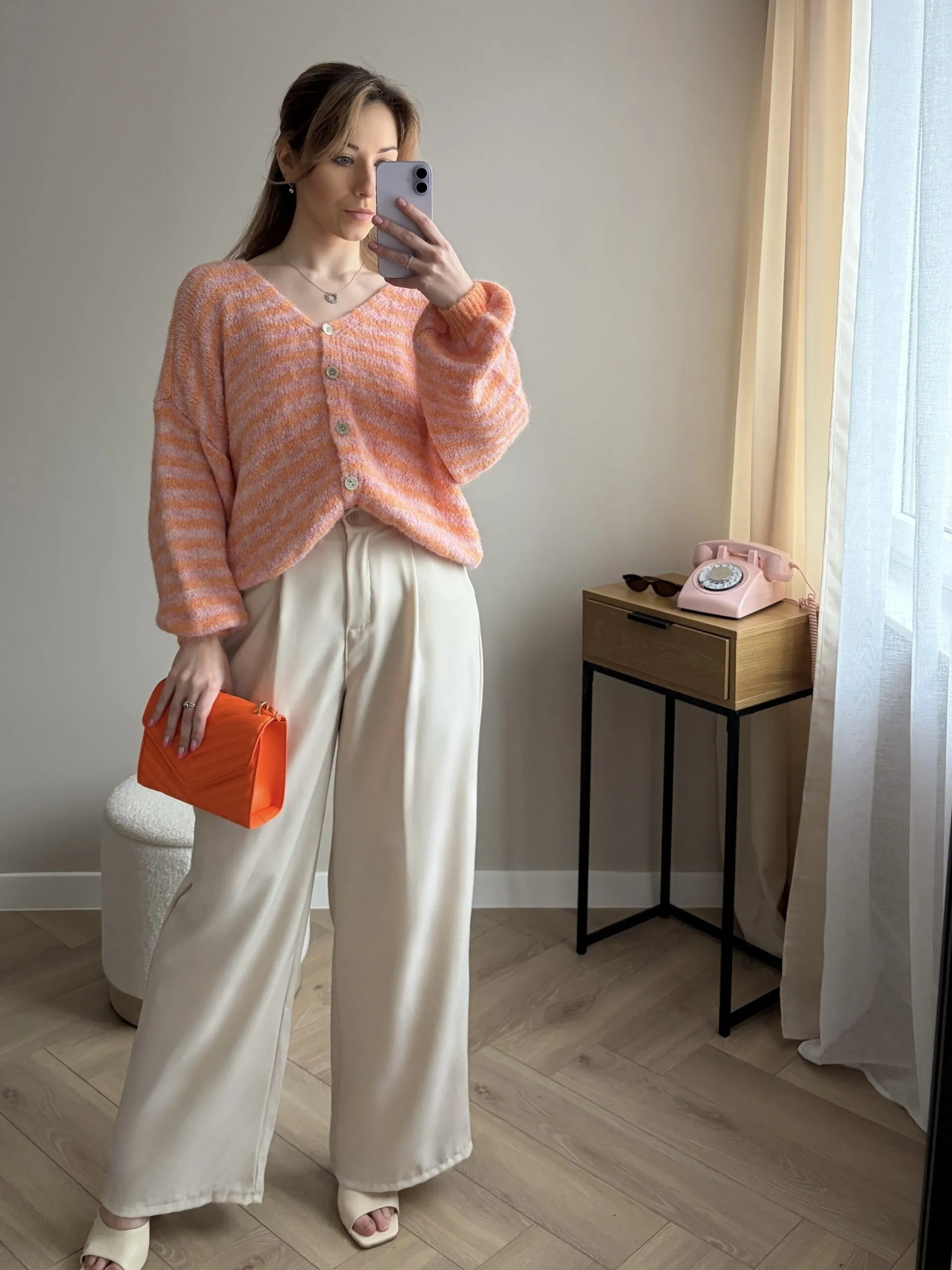 KARDIGAN PASTEL STRIPES - POMARAŃCZOWY